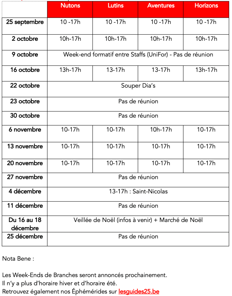 Nous avons le plaisir de vous annoncer le début de l’année Guides 2022-2023. Les Staffs de Branches vous préparent déjà une super année et seront ravis de vous retrouver ce 25 septembre à 10h00.